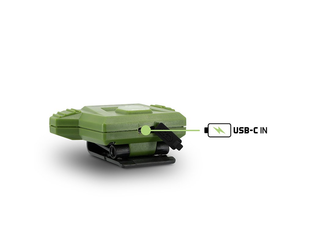 Delphin RAZOR USB UC je praktická čelová LED lampa zelenej farby so zabudovanou Li-Ion batériou, ktorej kapacita je 500mAh. Okrem klasického nosenia ju môžete vďaka jej nízkej hmotnosti nosiť aj na šilte pomocou zabudovaného úchytu. Vybavená je pohybovým senzorom s jednoduchým ovládaním a pamäťovou funkciou, ktorá si pamätá zvolenú intenzitu a farbu svetla. Intezitu svietenia môžete ovládať pomocou troch funkcií. Po prvom stlačení je k dispozícii 30% výkonu s výdržou batérie 8h, po druhom stlačení je k dispozícii 100% výkonu s výdržou batérie 3h a po treťom stlačení je k dispozícii 100% výkonu svetla červenej farby s výdržou batérie 3h. Svietivosť je pri plnom výkone 85lm. Výhodou je aj jednoduché nabíjanie prostredníctvom USB-C kábla priamo cez powerbanku s časom trvania nabitia do dvoch hodín.