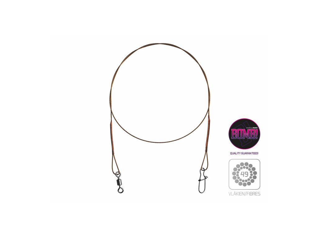 Oceľové lanko Delphin BOMB! s obratl. a karabínkou 2ks/20cm/7kg