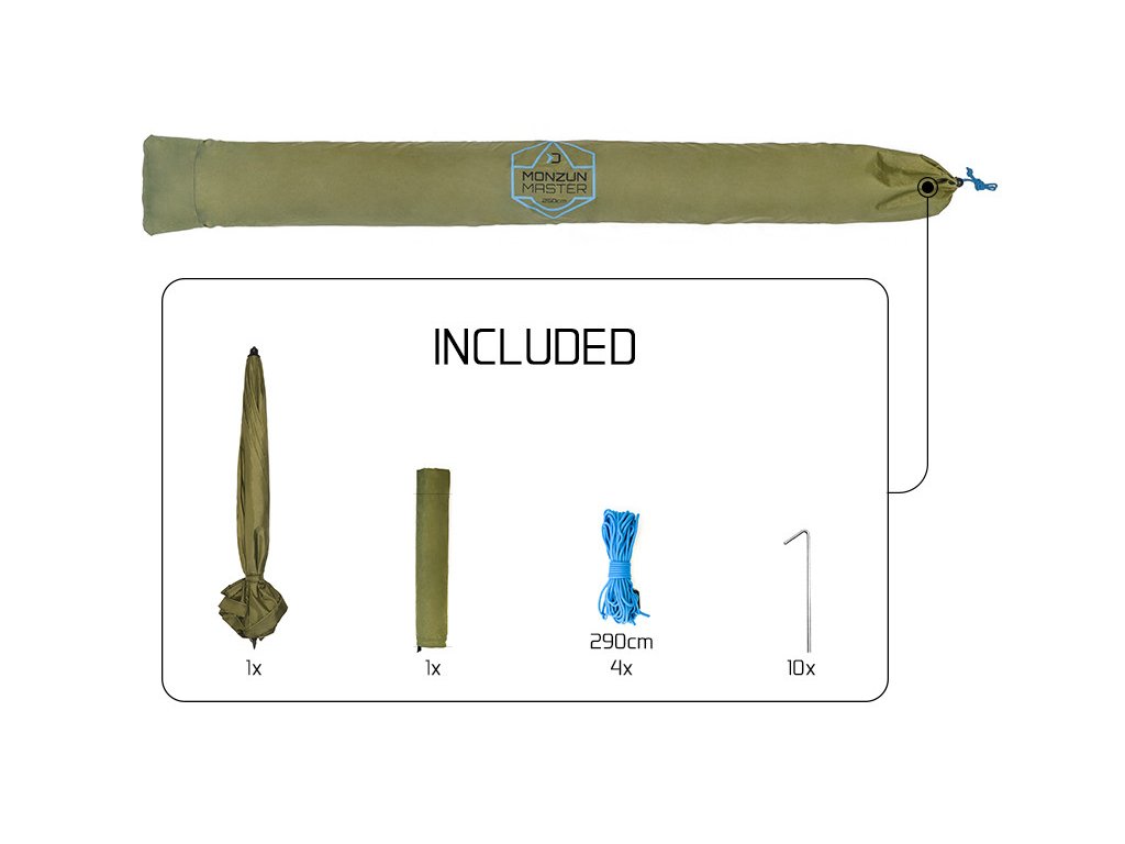 Prémiový dáždnik Delphin MONZUN Master s 3/4 bočnicou oceníte hlavne pri výpravách, kde počasie nie je úplne ideálne. Ochráni pred nepríjemným slnkom, rannou rosou ale aj dažďom ktorý vie intenzitou prekvapiť najmä v letných mesiacoch. Štyri ukotvovacie laná poslúžia výborne pri silnejšom vetre. Svetlo modrá farba lán bola navrhnutá zámerne tak, aby nedochádzalo k zakopnutiu pri zníženej viditeľnosti. Švy dáždnika sú za horúca kompletne podlepené vodeodolnou páskou pre zabezpečenie 100% nepremokavosti aj pri veľkom daždi. K dispozícii je bočná trojštvrťová predĺžená stena, ktorá sa upevňuje pomocou kvalitného zipsu okolo kupole. Spodná časť bočnej steny je osadená úchytmi pre pripevnenie k zemi pomocou zaisťovacích kolíkov (10 kolíkov je súčasťou balenia). Zipsy sú plne prekryté kusom látky pre zabezpečenie ich nepremokavosti. Dáždnik disponuje kĺbom na nastavenie sklonu kupoly, vďaka čomu sa viete prispôsobiť slnečným lúčom ale aj vetru. Výšku dáždnika si prispôsobíte podľa potreby, čo zároveň uľahčí jeho upevnenie aj v členitejšom teréne. Delphin MONZUN je exkluzívnym dáždnikom na každý deň!