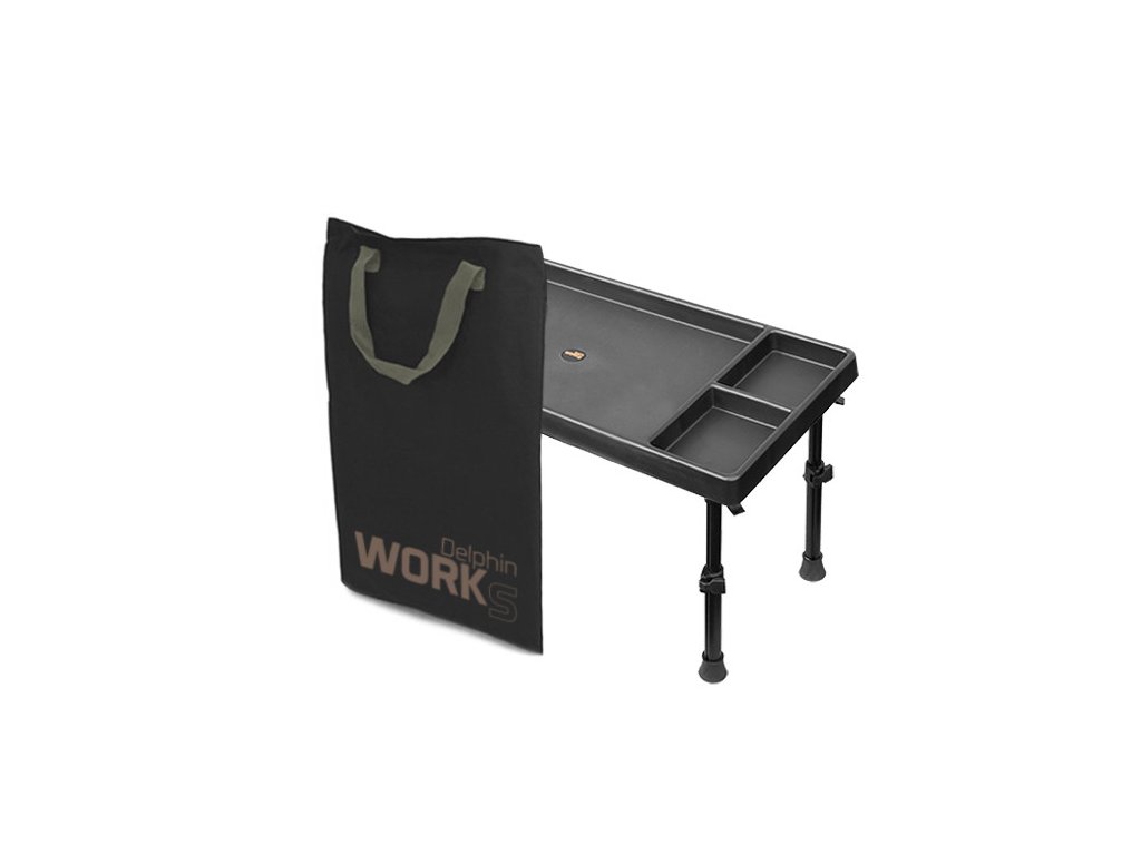 Multifunkčný stolík, ktorý sa stane vašim neoceniteľným spoločníkom. S veľkorysými rozmermi pracovnej polochy až 60x30cm ponúka široké možnosti využitia. Pracovný priestor je rozdelený na niekoľko priehradiek. Pri viazaní montáží si do jednotlivých priečinkov môžete prehľadne uložiť ich komponenty, pri love na feeder si do nich môžete zas nasypať viac druhov nástrah, krmítka a pod. Plastový stolík WORKS je skrátka užitočným kúskom rybárskeho vybavenia, ktorý budete používať stále. Má teleskopické nohy, ktoré dokážete zdvihnúť o 10cm, takže samotná výška stolíka sa tak pohybuje od 24 do 34cm (meraný vrchný okraj stolíka). Nohy je možné zamknúť špeciálnym blokovacím systémom, čiže nehrozí zrútenie stolíka a vecí na ňom. Konce nôh sú vybavené gumenými koncovkami pre lepšiu stabilitu. WORKS sa dodáva s prepravnou taškou.