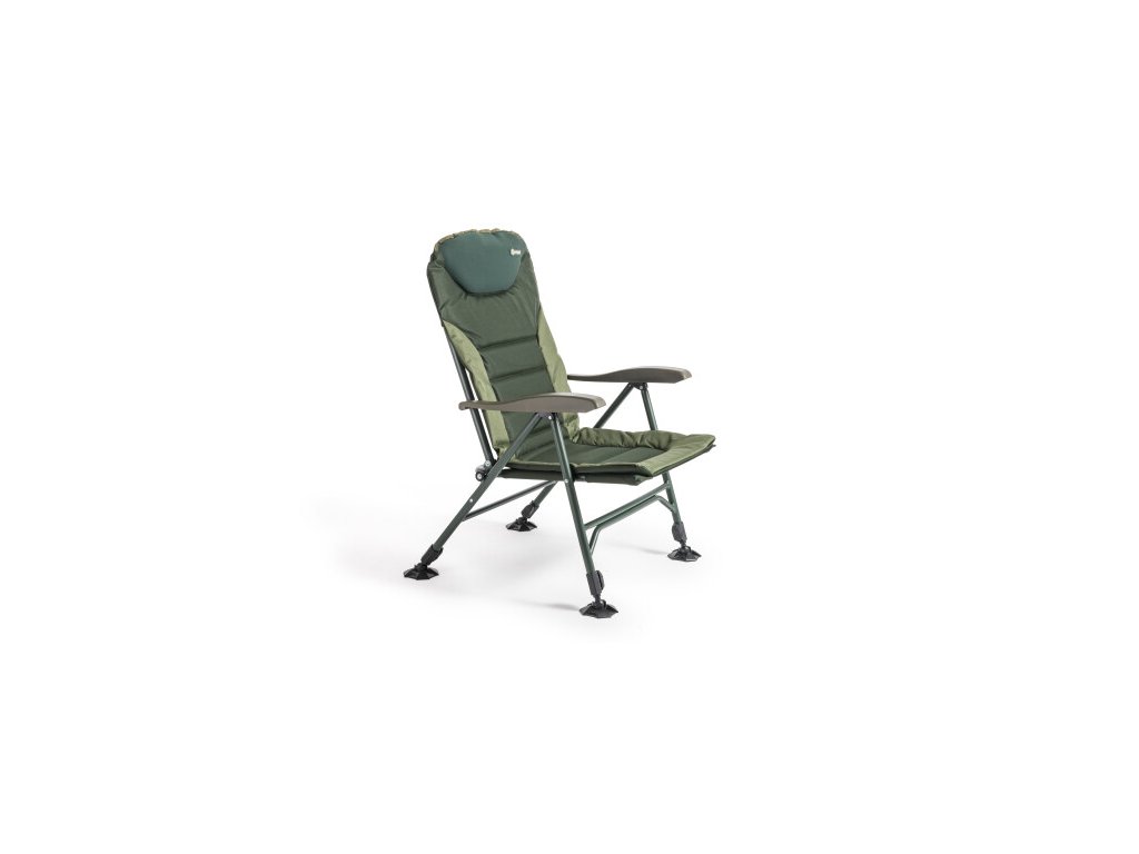 Skvele navrhnuté kreslo, ktoré plní priania mnohých rybárov. Je vybavené anatomicky tvarovaným operadlom a silne polstrovaným neoprénovým vankúšom. Všetky štyri nohy sú teleskopické, vybavené spoľahlivou aretáciou a veľkými pätkami proti zaboreniu. Konštrukcia je stabilná, prekvapivo ľahká a veľmi pevná (nosnosť 160 kg). Kreslo ponúka pohodlný systém naklápania operadla pri nadvihnutí opierok na ruky.