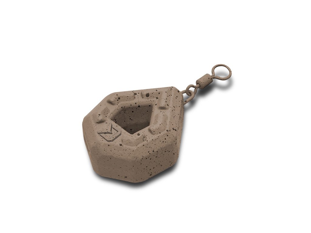Je inovatívna záťaž dizajnovaná tímom značky Delphin, vhodná pri love na odhod na členitom dne, alebo pri love na tečúcich vodách. Vďaka jedinečnému hranatému tvaru bolo možné vytvoriť kompaktnejšiu záťaž, ktorá má pri menších vonkajších rozmeroch rovnakú hmotnosť ako bežne predávané olová podobného typu. To zaručí výborné nahadzovacie vlastnosti a rýchle klesanie ku dnu. Pre docielenie čo najdlhších a najpresnejších hodov je navyše spodná časť záťaže rozšírená, aby sa tu koncentrovalo viac hmoty a tak predlžuje Vaše hody o ďalšie dôležité metre! Výstupky na hlavných plochách záťaže eliminujú kĺzanie po dne. Otvor v strede záťaže umožňuje rýchlejšie klesanie montáže vodným stĺpcom. Povrch záťaže je chránený farbou v prírodných odtieňoch hnedej s čiernymi fŕkancami, čo dokonale kamufluje jej prítomnosť na dne. Zväčšené očko na obratlíku umožňuje jednoduchšie a rýchlejšie upevnenie záťaže na montáž.