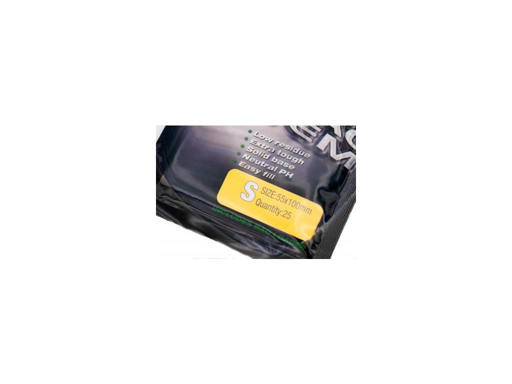 Ak lovíte vo veľmi hlbokej vode alebo v krajinách, kde je teplota vody vyššia, môžete ich jednoducho zdvojnásobiť, aby sa zabezpečilo, že vak dosiahne neporušené dno predtým, ako sa začne rozpadávať. Dodávajú sa v štyroch rôznych veľkostiach, aby pokryli všetky rôzne rybárske situácie – od hodenia vreca na horizont s veľkosťou XS až po prezentovanie väčšej časti návnady na veľmi tesnom mieste cez veľkú veľkosť a existujú aj malé a médium pre čokoľvek medzi tým. Solidz sú dodávané v uzatvárateľnom balení, aby boli bez vlhkosti, keď sa nepoužívajú. Balenie veľkosti XS alebo Small obsahuje 25 PVA vrecúšok, z toho 20 v balení Stredné alebo Veľké.